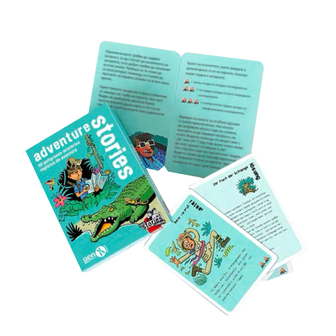 Sigue la misma mecánica que School Stories, Rainbow Stories, Pink Stories o Red Stories pero en este caso se proponen casos de misterios curiosos a resolver, enfocado a aquellos que aman las aventuras en lugares salvajes. Cuando un sol de justicia brilla en el cielo, el agua potable se te va agotando y te rodea un grupo de hienas hambrientas… ¡empieza la acción! Este juego es para todos aquellos que aman las aventuras. Estas Adventure Stories están pensadas para haceros sudar. ¡Solo haciendo buenas preguntas y devanándos los sesos conseguiréis seguir el rastro adecuado para resolver el misterio!
