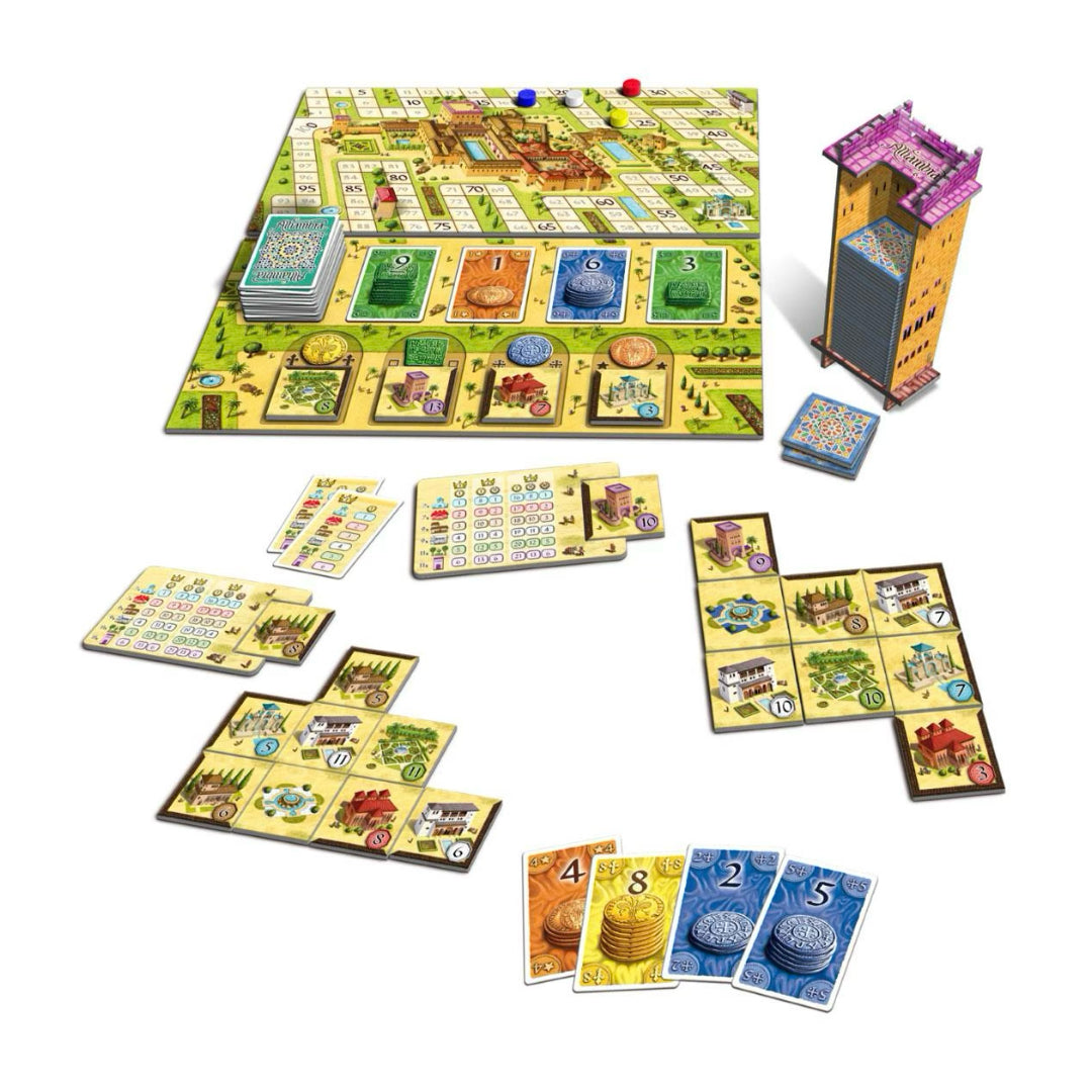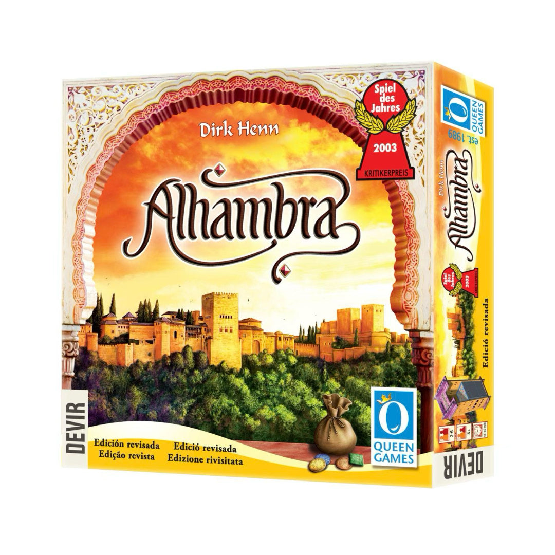 Los mejores arquitectos del mundo buscan demostrar su habilidad. Emplea los mejores equipos de constructores y asegúrese de que siempre tengan la moneda adecuada que necesitan. El jugador que construye la Alhambra más valiosa ganará la competencia por el mejor palacio. Ganador del mundialmente famoso premio "Spiel des Jahres" en 2003; ahora con nuevas obras de arte y dispensador de azulejos además esta edición tiene nuevas ilustraciones y una torre dispensadora de losetas. ¡La edición definitiva para un clásico ineludible en tu ludoteca!