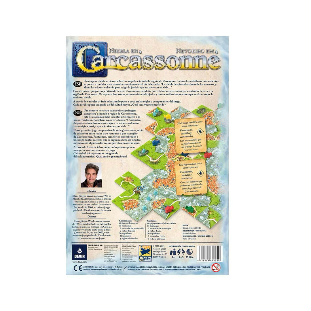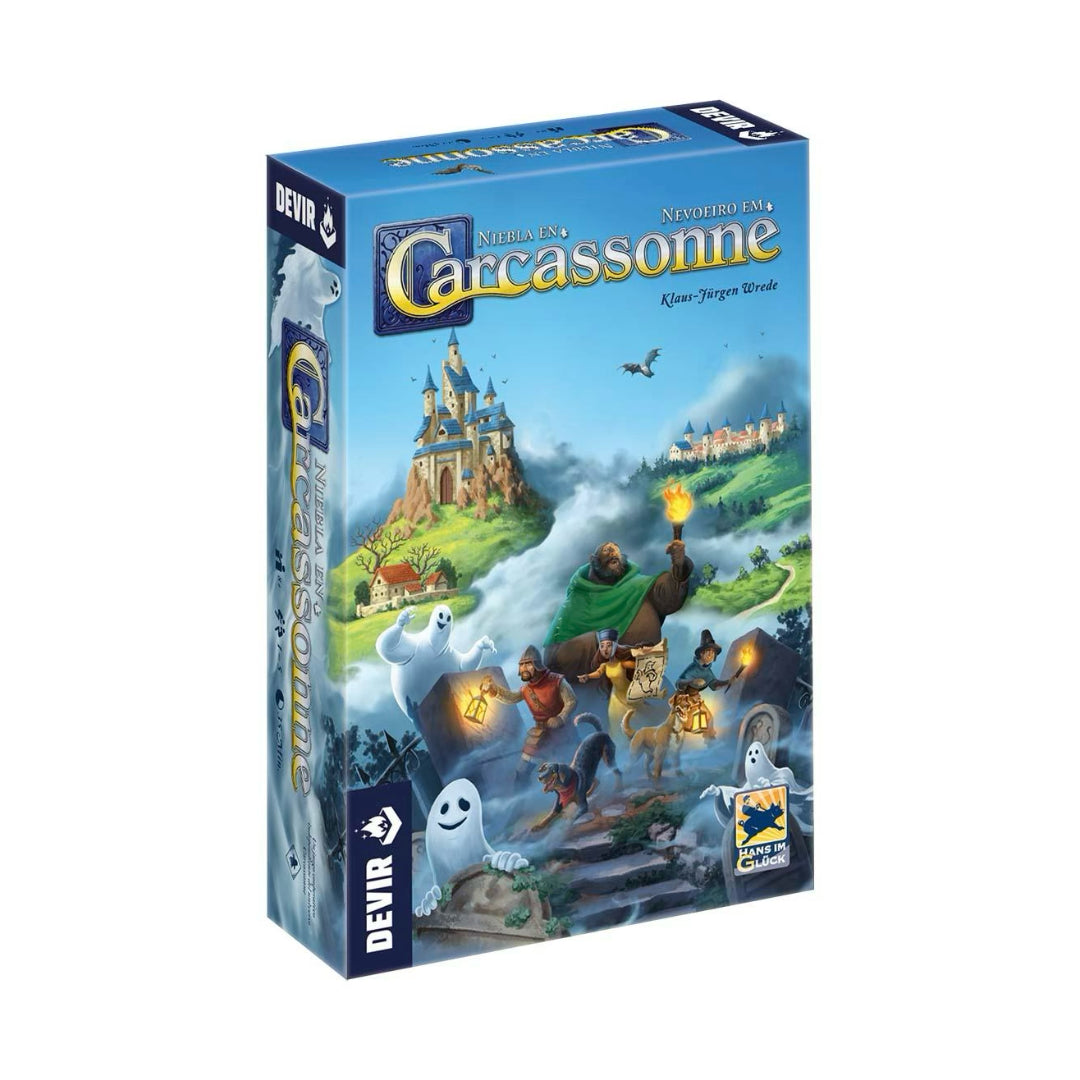 Una niebla espesa se ha instalado en los fértiles prados de Carcassonne, engulle granjas enteras y se arremolina hasta las murallas de la ciudad. Incluso los caballeros más valientes tiemblan ante ella y sus armaduras traquetean cuando escuchan el relato de los monjes: «La niebla trae las almas de los cátaros que fueron perseguidos durante las Cruzadas. Vuelven para hacer justicia». Para restaurar la paz en Carcassonne, debéis trabajar juntos para apaciguar a los espíritus inquietos.
