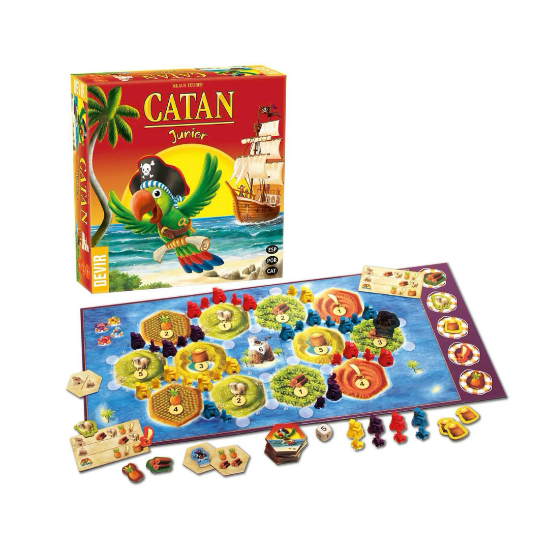 Catan Junior mantiene las mismas mecánicas de comercio que el clásico Catan, pero está adaptado para poder jugar fácilmente con los peques y así iniciarlos en el maravilloso mundo de los juegos de mesa modernos. A diferencia del Catan original, esta edición tiene una ambientación particular inspirada en un mundo de piratas, que construirán barcos y guaridas. Además, los jugadores podrán buscar la ayuda del loro Coco para conseguir grandes recompensas. El primer jugador que controle 7 guaridas será el ganador.
