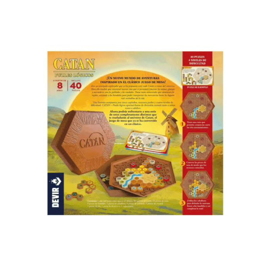En Catan Puzle los jugadores usan la lógica para descubrir la combinación precisa de losetas que les permita construir una determinada ruta. Así, los jugadores deberán encontrar la mejor manera de conectar granjas, minas y aserraderos con los asentamientos y ciudades de la isla. Las rutas comerciales deberán evitar obstáculos del terreno y, por supuesto, los famosos ladrones que acechan por doquier. Por suerte, los caballeros echarán una mano a la hora de proteger los caminos.