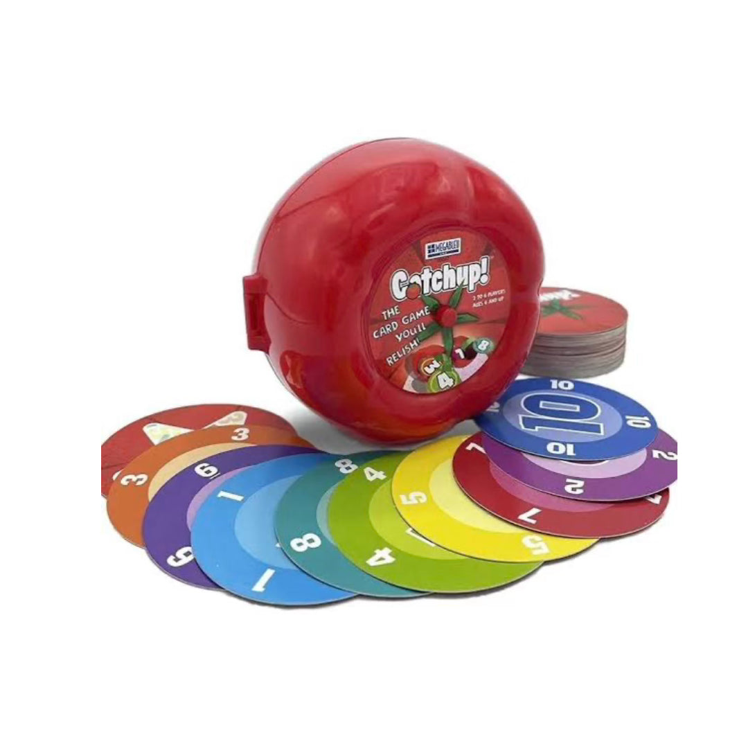 Catchup es un juego de velocidad en el que los jugadores compiten por ser el primero en descartarse de toda su mano. Ideal para todas las edades y ayuda al desarrollo de los reflejos y el pensamiento rápido. Además, ¡todos los componentes entran perfectamente en la cajita de tomate!