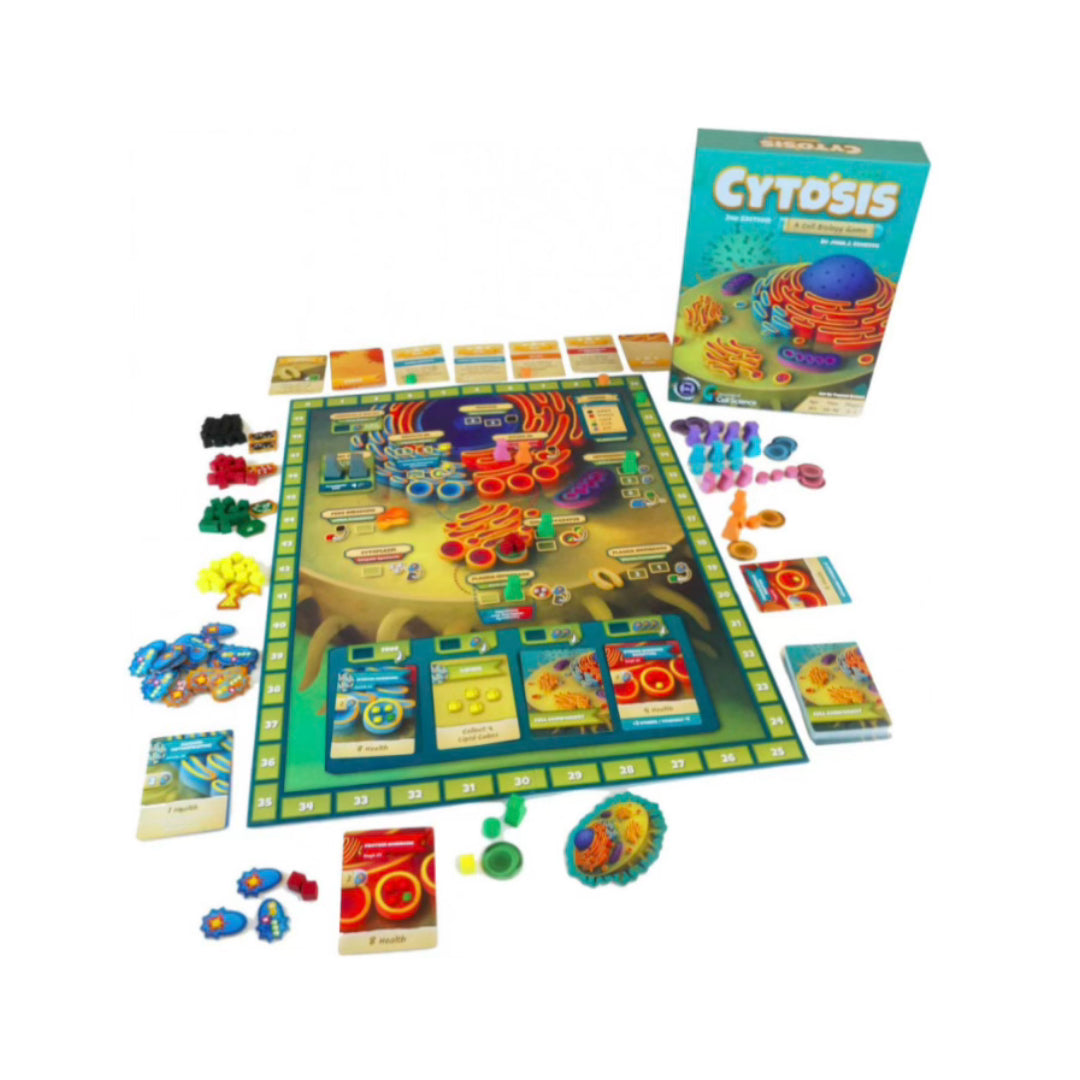 Citosis: Un juego de biología celular transporta a los jugadores dentro de una célula humana y los pone en control! En este juego de colocación de trabajadores biológicamente preciso, los jugadores se turnan para dirigir la acción celular, como colocar a los trabajadores en orgánulos disponibles y recoger recursos. Los jugadores invierten esos recursos para construir enzimas, hormonas y receptores hormonales para obtener puntos de salud.