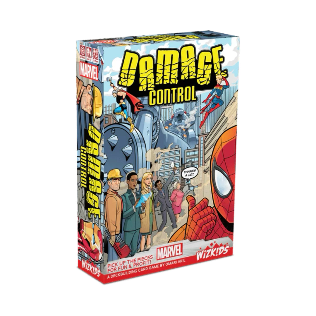 En Damage Control , cada jugador lidera un equipo de limpieza rival encargado de encontrar y asegurar los peligrosos artefactos y tecnologías enterrados entre los escombros. Representada por un montón de cartas dispersas, en su mayoría boca abajo, cada carta de escombros representa un objeto poderoso. ¡Las reliquias notables incluyen los tentáculos cortados de Doc Ock, los drones Ultron dañados, los cristales Terrigen y más!