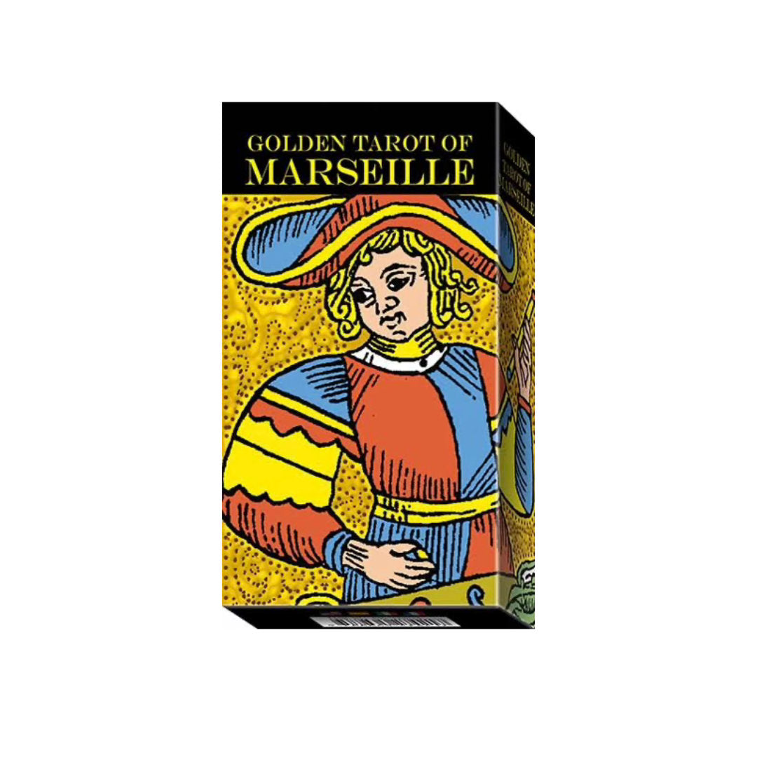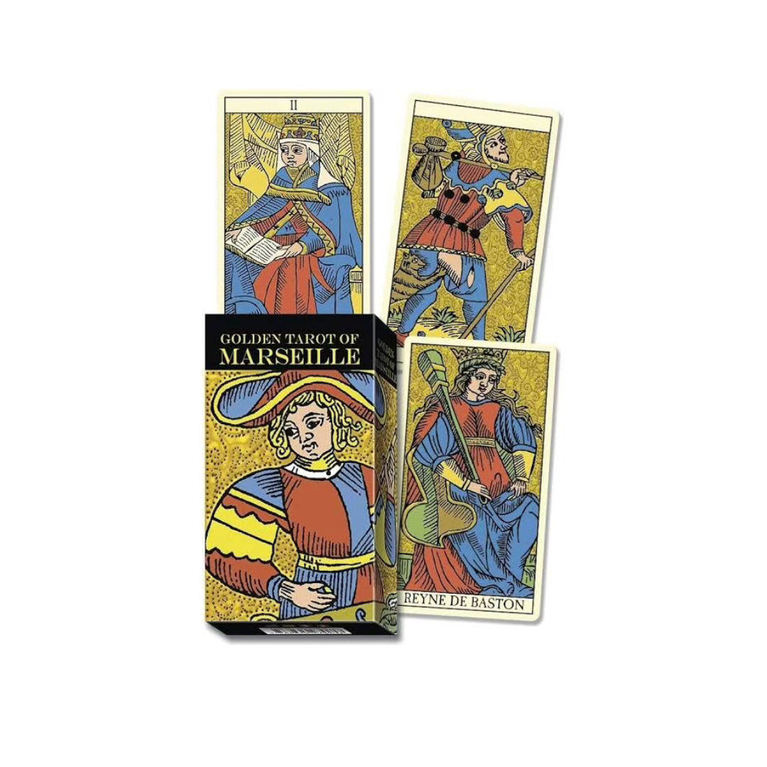 Las líneas han sido restauradas a partir de las xilografías originales de Claude Burdel (1751). Los colores han sido restaurados a su brillo original y las cartas han sido embellecidas con impresiones en lámina dorada en cada Arcano individual. El mazo de Tarot de Marsella más rico y precioso jamás publicado. Claude Burdel, 78 cartas, 66x120mm. Instrucciones. Edición multilingüe.