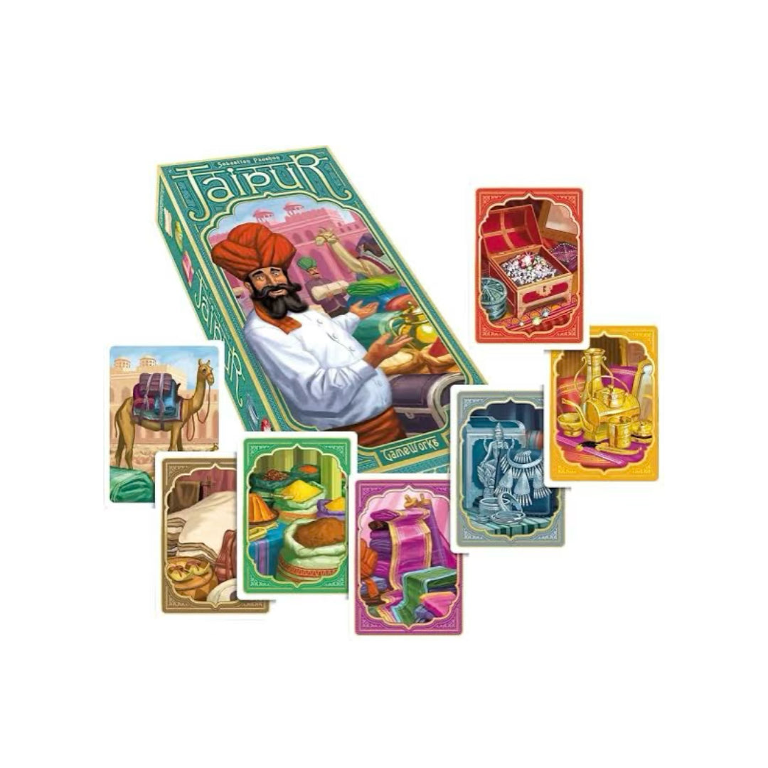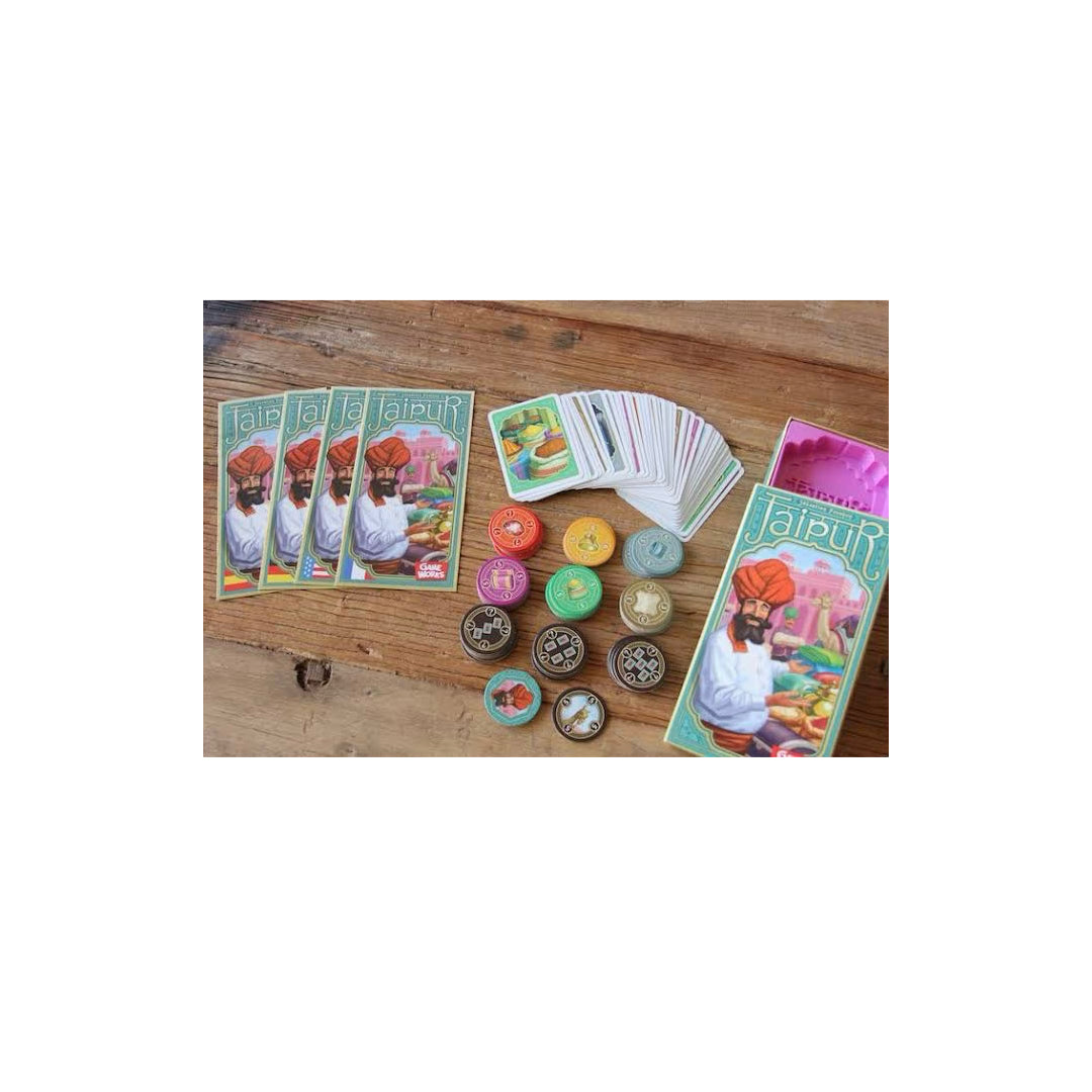 Tu objetivo es convertirte en el mercader personal de mAharajá siendo más rico que tu oponente al final de cada semana (ronda). Para conseguirlo, recoge e intercambia productos en el mercado, para luego venderlos obteniendo rupias. Si logras conseguir una buena venta, obtendrás una recompensa. Por su parte, los camellos se utilizan principalmente en intercambios para poder obtener múltiples productos en el mercado. Al final de cada ronda, el mercado más rico recibe un sello de excelencia. El primer jugador que consiga 2 sellos será el ganador de la partida. En tu turno, puedes tomar o vender cartas. Si tomas cartas, puedes: agarrar diversos productos; Tomar 1 único producto de tomar todos los camellos. Una ronda finaliza inmediatamente si hay 3 tipos de fichas de producto se agotan o si no quedan más cartas en el mazo de robo en el momento de completar el mercado.