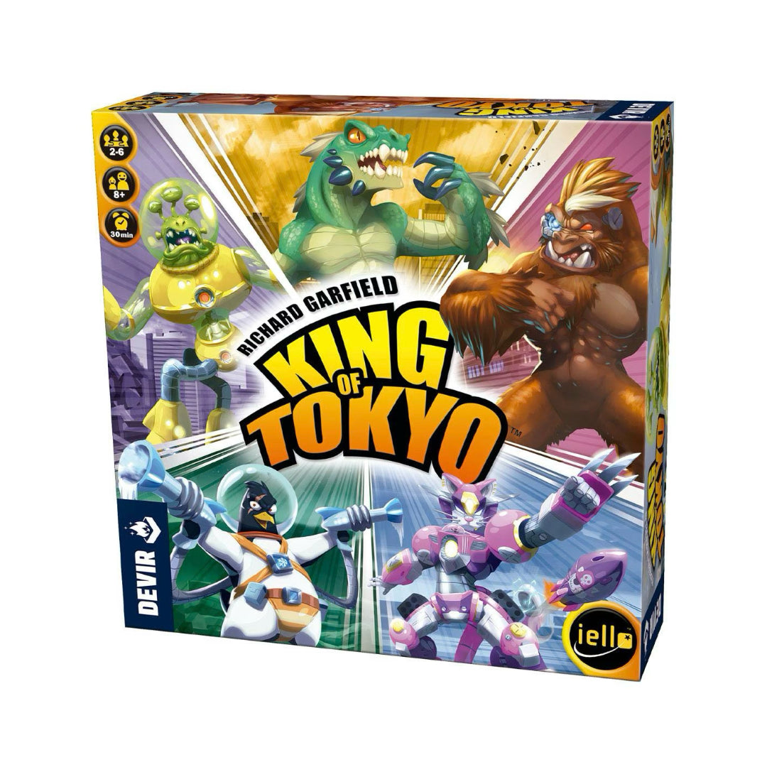 King of Tokyo es un juego de mesa creado por Richard Garfield, el autor del juego de cartas Magic: The Gathering y los juegos de mesa King of New York o Bunny Kingdom, entre muchos otros. En este juego podremos ser monstruos mutantes, robots gigantes enfurecidos o grandes alienígenas, envueltos en monumentales y caóticas contiendas por ver quién reinará en la ciudad de Tokio. Tenemos que jugar intentando machacar y pisotear a cualquiera que se interponga en nuestro camino.