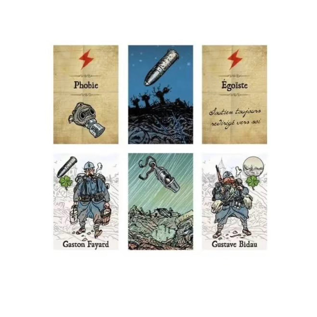 ¿Qué tragedias puede soportar una amistad, juego de cartas de ritmo rápido, totalmente cooperativo que tiene lugar en las trincheras de la Primera Guerra Mundial, es un juego elegante en el que se deben evitar las amenazas y el liderar un equipo, es considerado como uno de los mejores juegos cooperativos que jamás se han hecho. En cada ronda, el líder del equipo actual elegirá cuántas cartas robará cada jugador. Luego, dando la vuelta a la mesa, los jugadores deben jugar una carta en su mano o salir de la misión. Cada carta representa amenazas para el equipo (como proyectiles de mortero y condiciones meteorológicas) o rasgos de personalidad negativos (como miedo u obsesión). Al final de la ronda, se agregan más cartas al mazo de robo. El juego termina solo si los jugadores pueden agotar el mazo de robo y sus manos sin dejar que se acabe el tiempo.