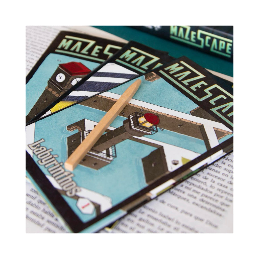 Cada caja de Mazescape contiene siete desafíos distintos a los que hacer frente. La dificultad de los mismos es creciente, empezando por un reto relativamente fáciles , que poco a poco se convierte en un elegantes retos sólo al alcance de las mentes más agudas. Pero no sufras, si en algún momento te trabas en el laberinto, siempre podrás recurrir al solucionario que acompaña cada mapa. En Mazescape Labyrinthos atravesarás tres territorios bien diferenciados. El embarcadero, el cementerio y la montaña. El primero de los mapas te ayudará a entender los conceptos más esenciales del juego, y a partir de ahí se irán complicando poco a poco hasta el desafío final. Además, cuenta con un montón de objetivos secundarios que podrás explorar con tal de sacarle el máximo jugo a esta caja.