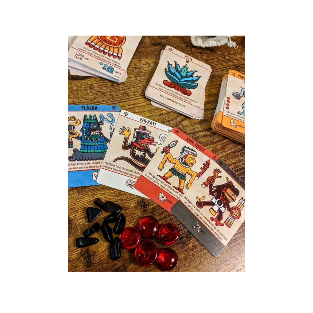 El juego viene con cuatro mazos parcialmente prediseñados, que representan a dioses aztecas de las cuatro direcciones: Tezkatlipoka, Tlalok, Ehakatl y Xipe Totek. En el modo de juego principal, los jugadores seleccionan un mazo y luego seleccionan un equipo complementario de criaturas, elementos y hechizos antes de luchar en la arena. Cada criatura que invocas tiene habilidades únicas basadas en los veinte signos del día aztecas, por ejemplo, Águila permite que tus criaturas vuelen un carril para atacar, Jaguar permite cambiar de carril antes de atacar y Serpiente permite comer Nawals derrotados para absorber sus poderes. Los nawals se pueden combinar para crear una criatura híbrida con más salud, poder y ambos conjuntos de habilidades. Cambiar de forma a un Nawal le devuelve la vida por completo, así que acaba con las criaturas heridas de tu oponente para evitar darles una jugada poderosa.