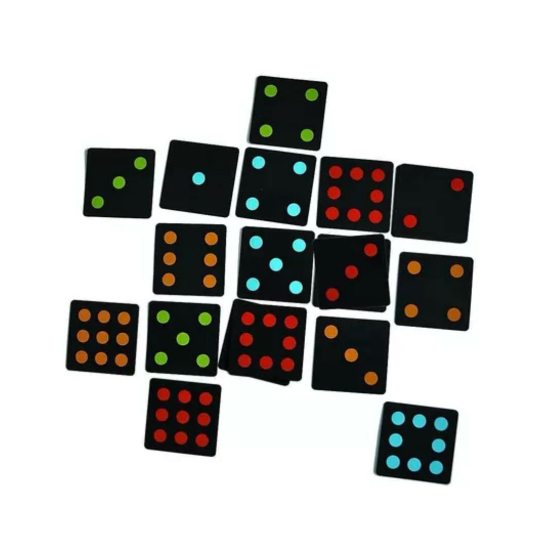 Cada jugador mezcla sus cartas y las coloca frente a él en pila, cara oculta. El primer jugador devuelve su primera carta y la coloca en el centro de la mesa. El siguiente jugador devuelve su primera carta. A partir de ahora, cada tarjeta devuelta debe ser yuxtapuesta o superpuesta. Yuxtapos: yuxtaponer un lado o ángulo a una tarjeta/cartas ya colocadas. Superponer: el número de puntos de la tarjeta superpuesta debe ser mayor que el de la tarjeta ya colocada (el color no importa). Atención: las tarjetas deben caber en un cuadrado de hasta 6 x 6 tarjetas. Tan pronto como un jugador logró alinear 4 cartas (5 cartas a 2 jugadores) del mismo color, gana la ronda. Este jugador luego toma la carta con más puntos en su serie y la posa frente a él boca arriba. Esta tarjeta ya no se puede utilizar para las siguientes mangas. Todas las demás cartas se redistribuyen nuevamente a los jugadores para comenzar una nueva ronda.